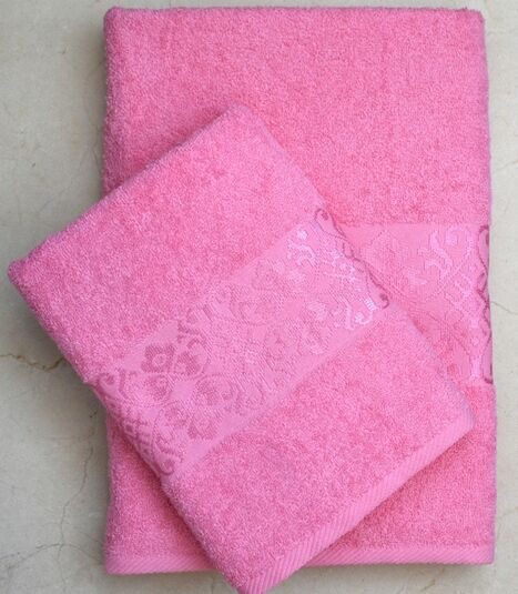 Набор махровых полотенец "Дуэт"-розовый 2 шт ( 50*90 см,70*140 см) хлопок 100% 2 фото