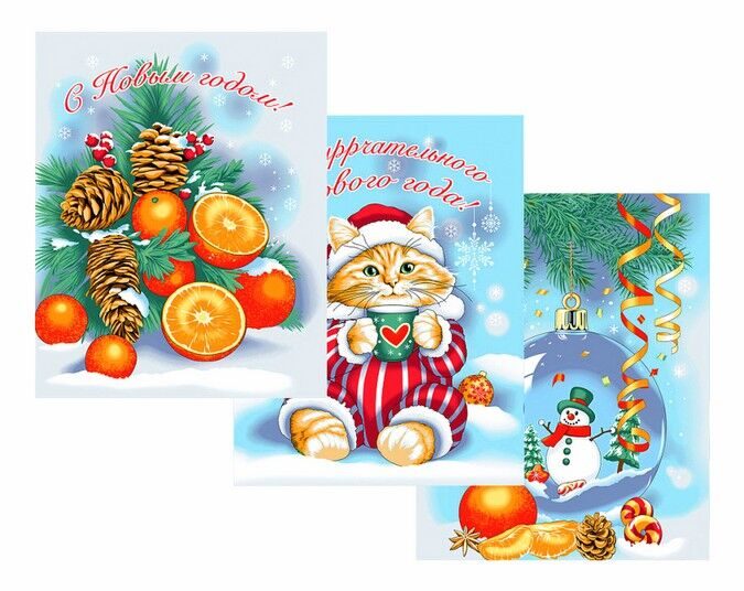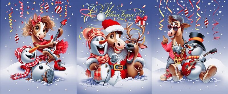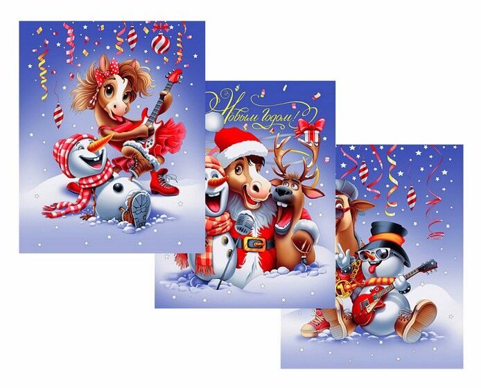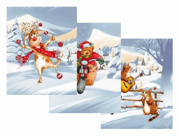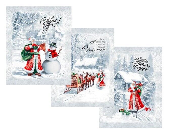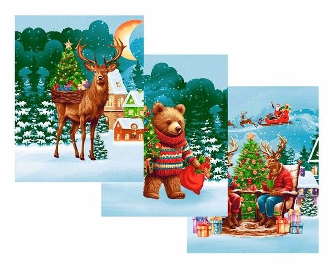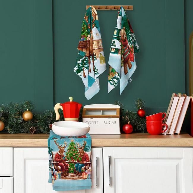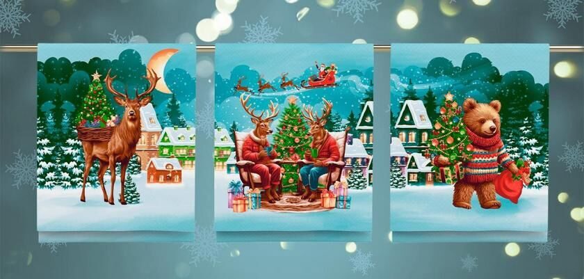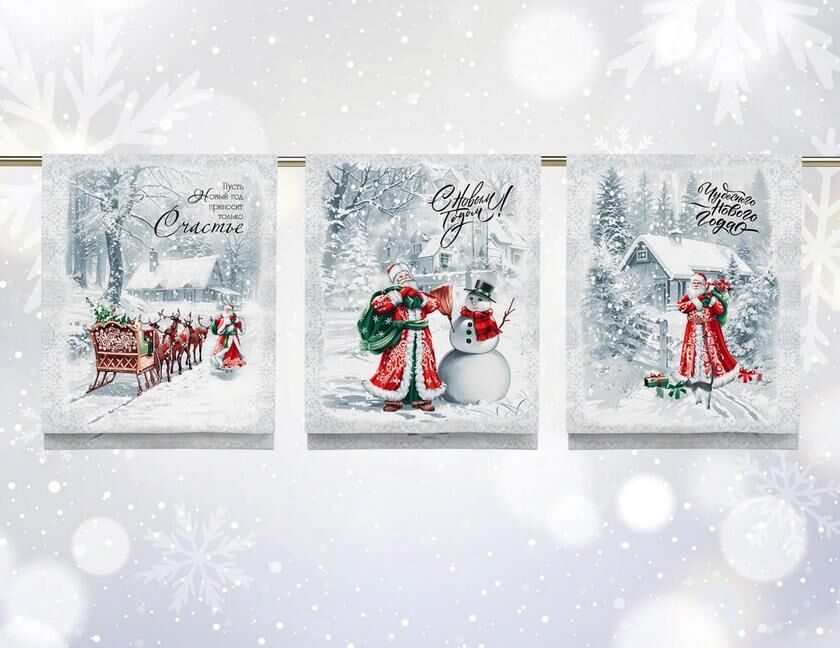 К-т полотенец "Ретро Новый год" 50*60 см. - 3 шт. рогожка хлопок 100% 2 фото