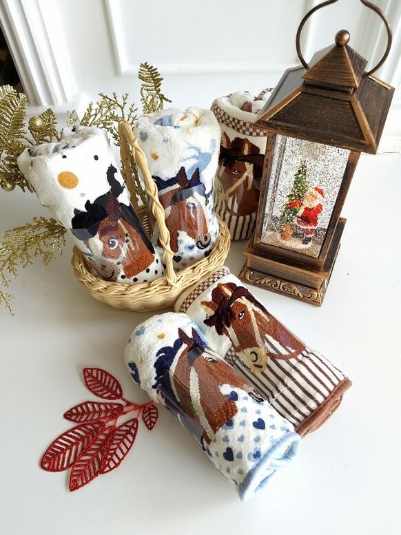 Полотенце из микрофибры с карабином "Новогодние лошадки" 35*75 см.