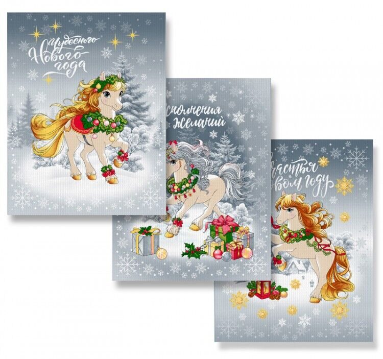 К-т полотенец "Зимний сюрприз" 50*60 см. - 3 шт. вафля хлопок 100%