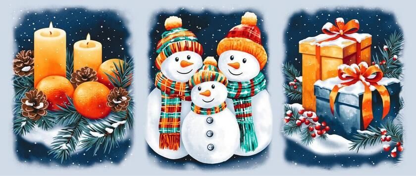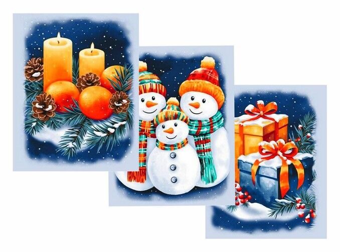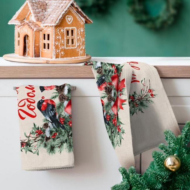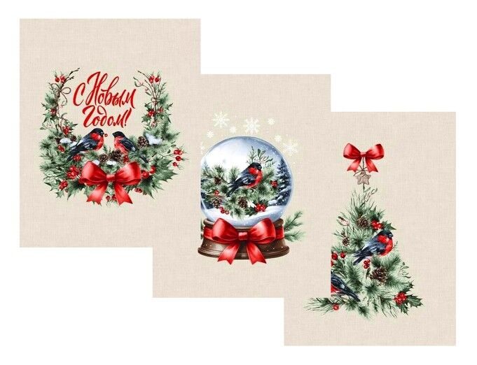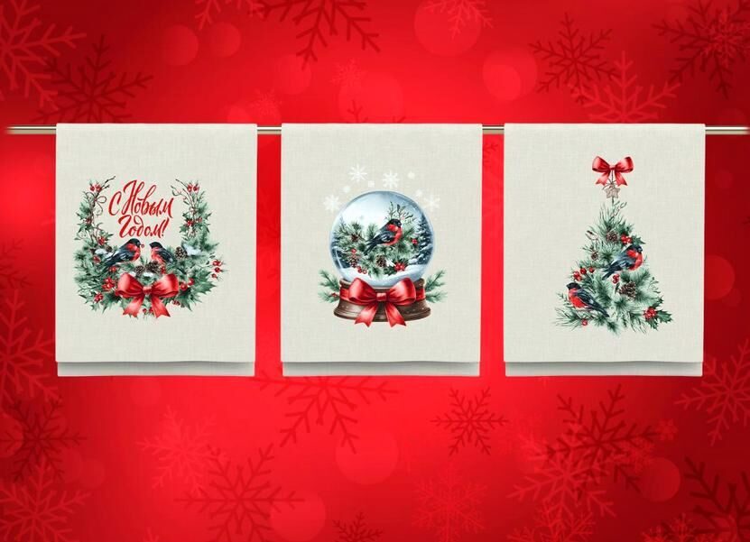 К-т полотенец "Новогодние снегири" 50*60 см. - 3 шт. рогожка хлопок 100% 3 фото