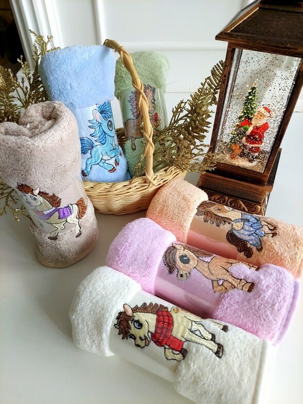 Полотенце из микрофибры "Пони на поляне" с атласной каймой 35*75 см.