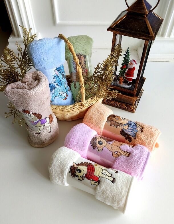 Детское полотенце из плюшевой микрофибры "Пониландия" 28*40 см.
