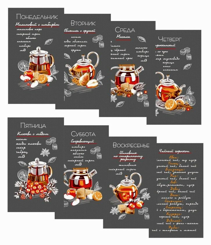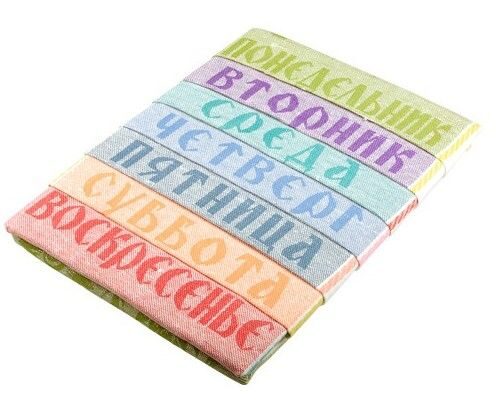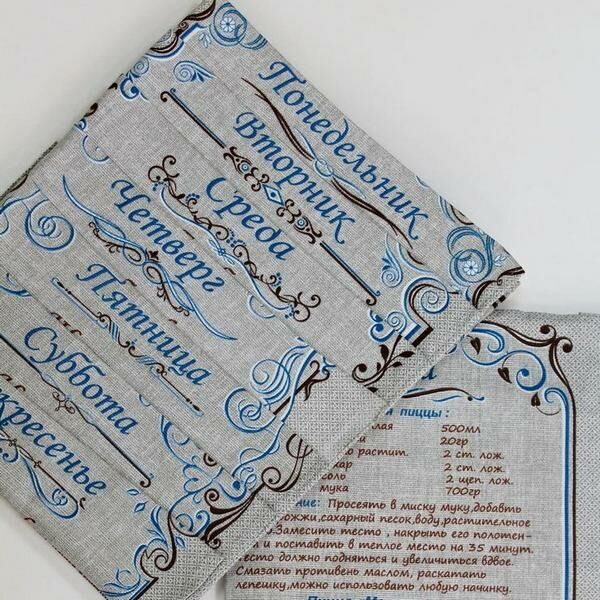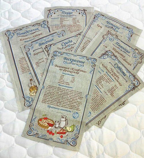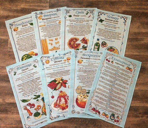 Комплект кухонных полотенец из рогожки "Дни недели - Рецепты" 35х60 см -8 шт. Хлопок 100%