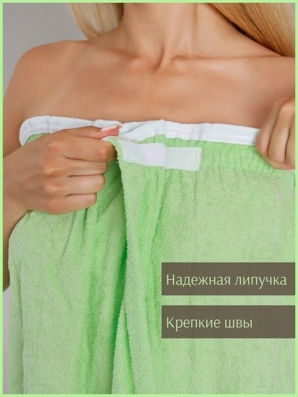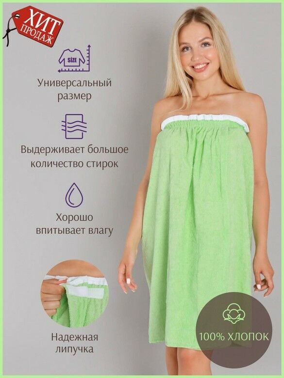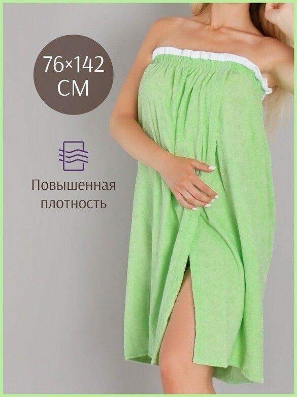 Парео женское для бани и сауны САЛАТОВЫЙ махровый хлопок 100%