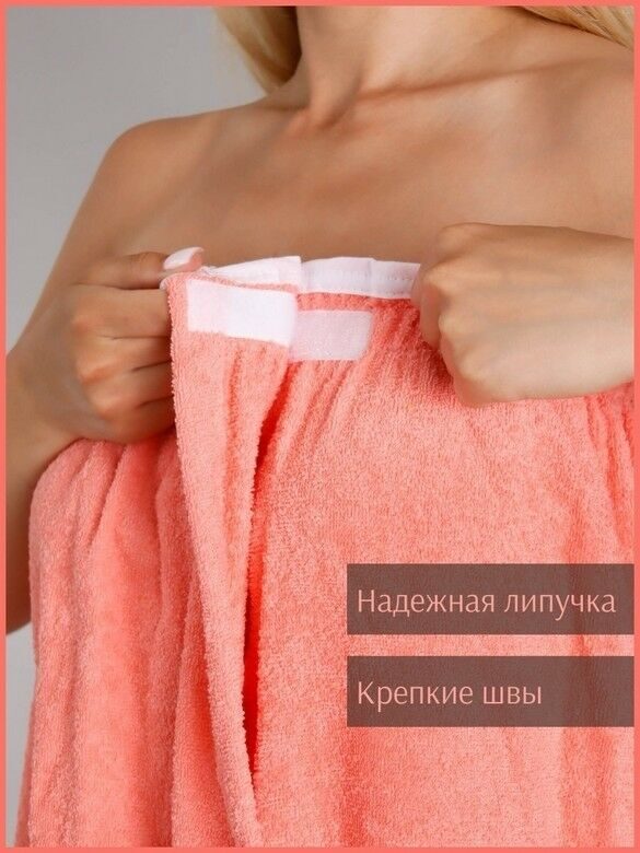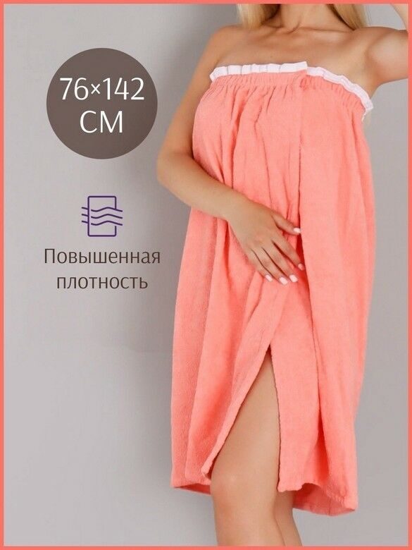 Парео женское для бани и сауны ПЕРСИК махровый хлопок 100%