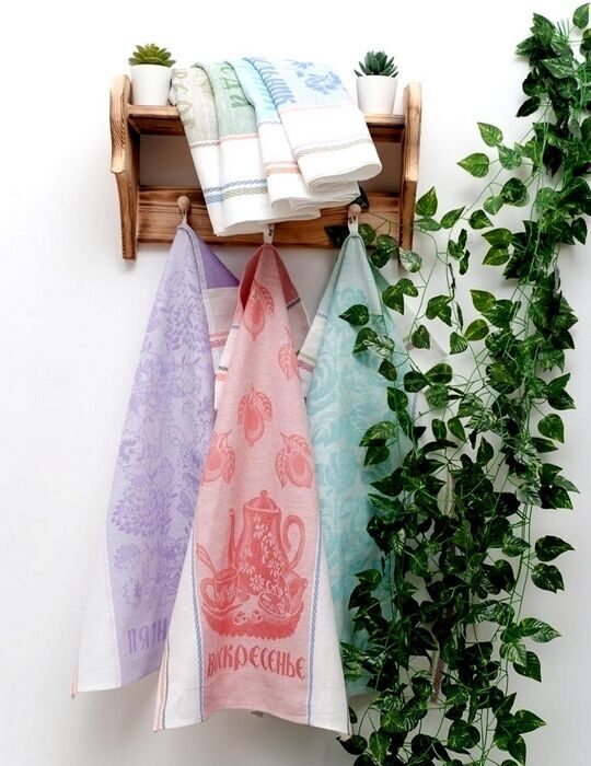 Комплект льняных жаккардовых полотенец "Неделька" п/лен 7шт. 50*70 см.