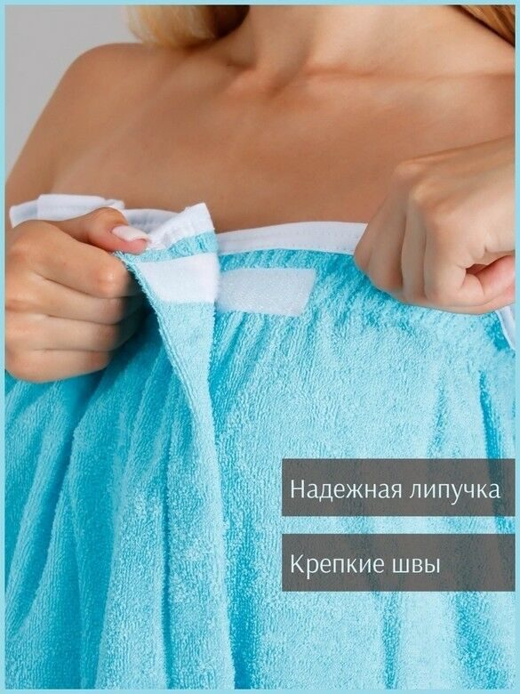 Парео женское для бани и сауны ГОЛУБОЙ махровый хлопок 100%