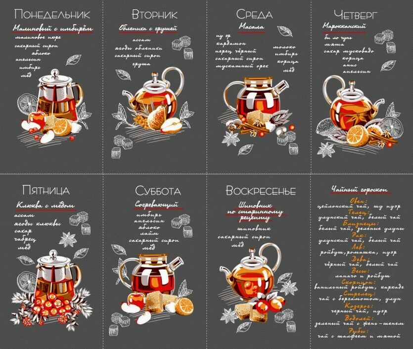 Комплект кухонных вафельных полотенец "Дни недели-Чайный гороскоп" 35х60 см -8 шт. Хлопок 100%