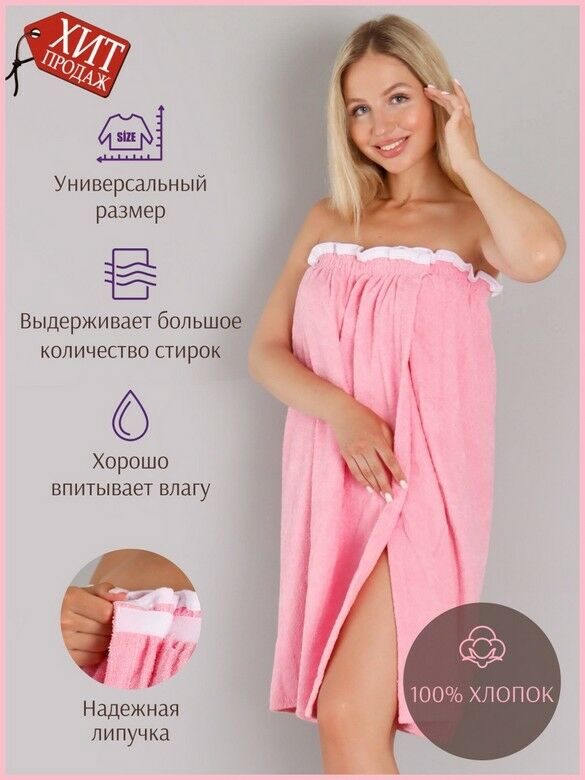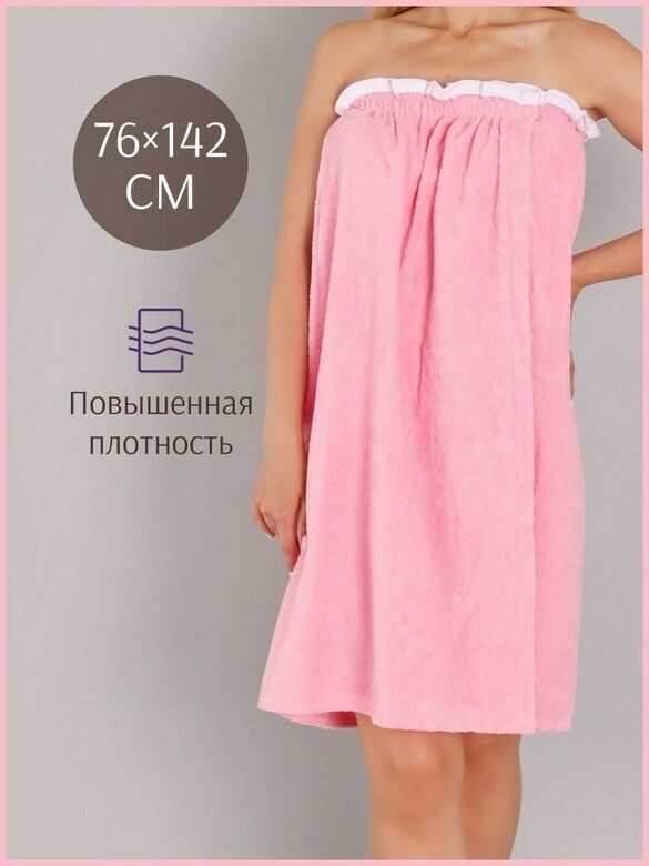 Парео женское для бани и сауны РОЗОВЫЙ махровый хлопок 100%