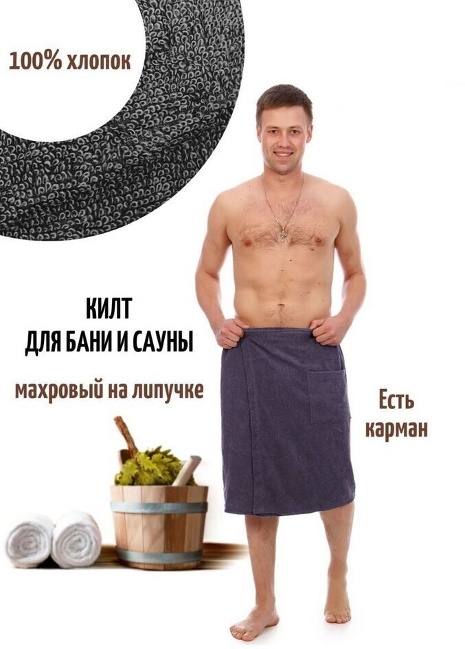 Килт мужской для бани и сауны СЕРЫЙ махровый хлопок 100%
