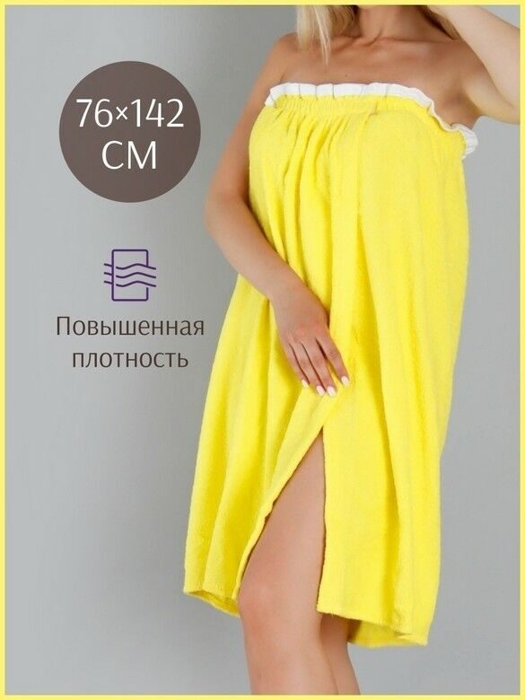 Парео женское для бани и сауны ЖЕЛТЫЙ махровый хлопок 100%