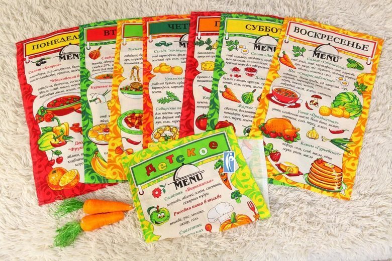 Комплект кухонных вафельных полотенец "Дни недели+Детское меню" 35х60 см (8 шт. - 7 дней недели+ 1 Детское меню) Хлопок 100%