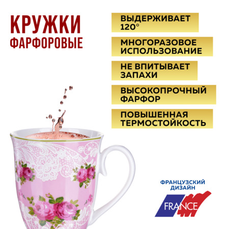 27881-Н1 Набор кружек 4пр фарфоровая 300 мл Цветы LR (х12) 7 фото