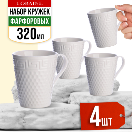 31445-Н1 Набор кружек 4пр 320 мл ажурная фарфор LR (х12) 7 фото