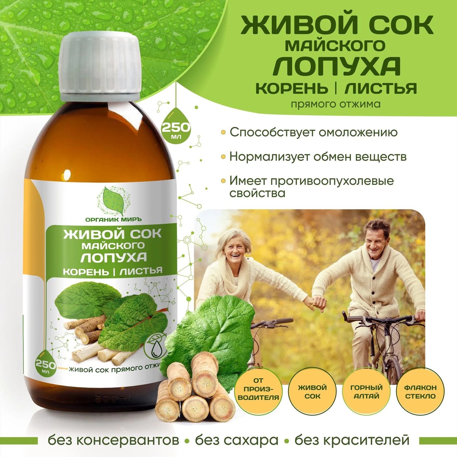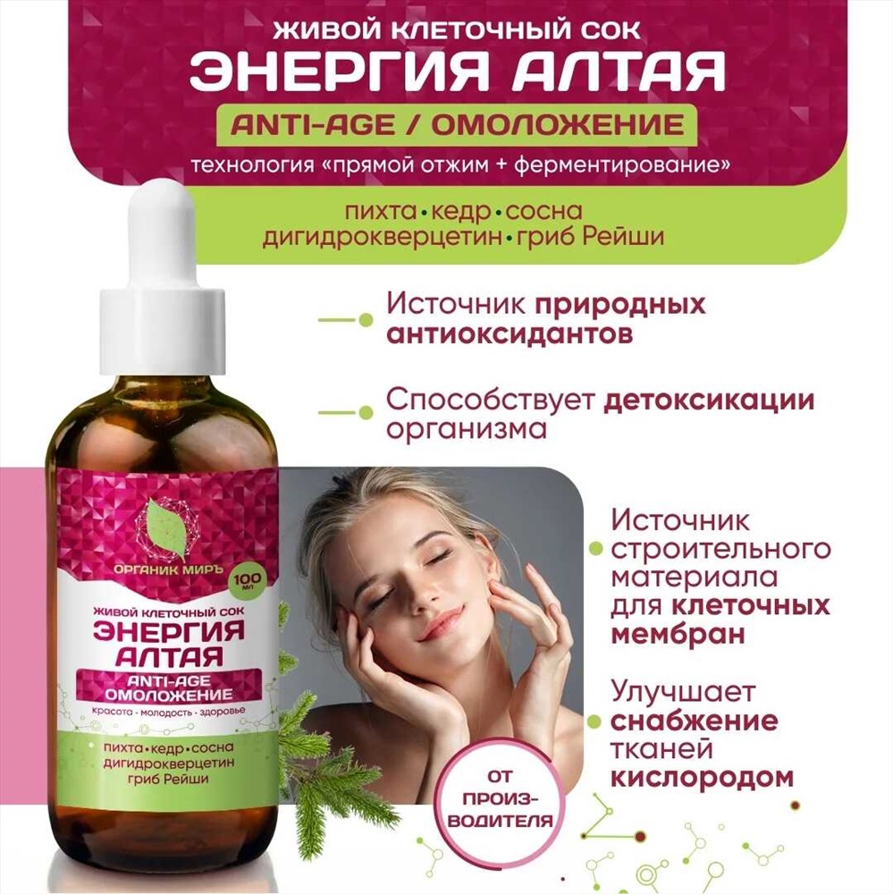 Живой сок Энергия Алтая Омоложение Anti-Age c Дигидрокверцетином и грибом Рейши 100 мл. 2 фото