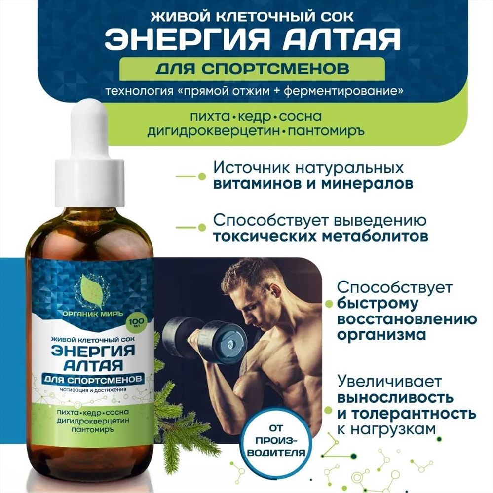 Живой сок Энергия Алтая для Спортсменов c дигидрокверцетином и Пантомиръ 100 мл.