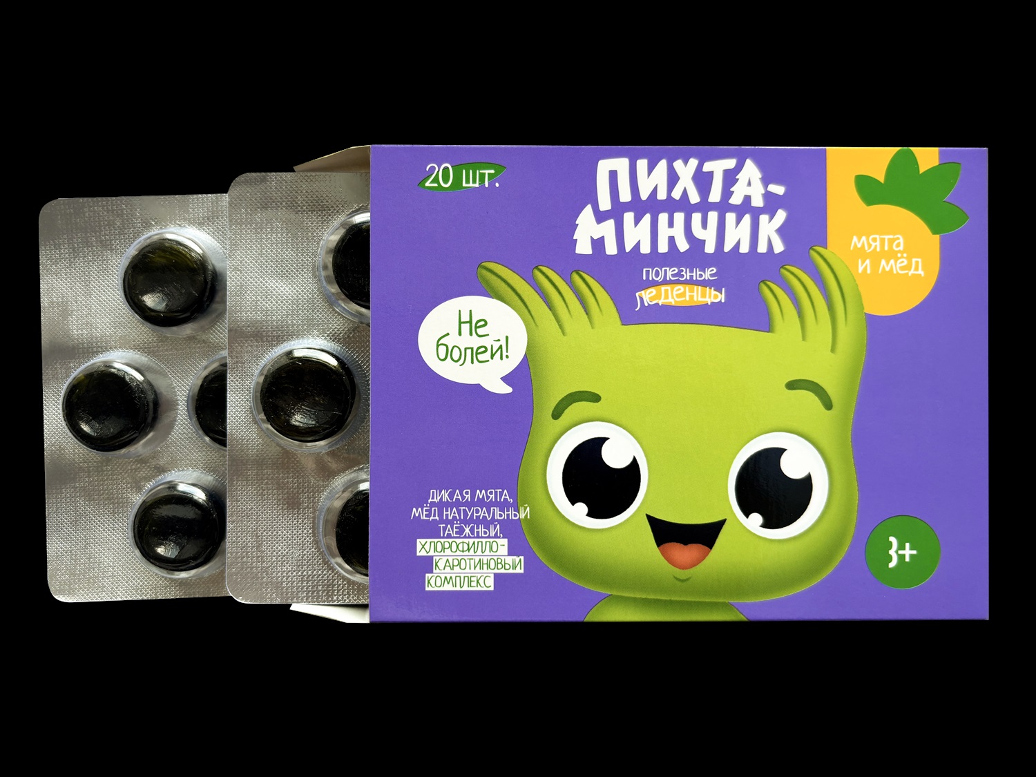 Леденцы с мёдом, мятой, витамином С и хвойным хлорофилло-каротиновым комплексом 20 шт.