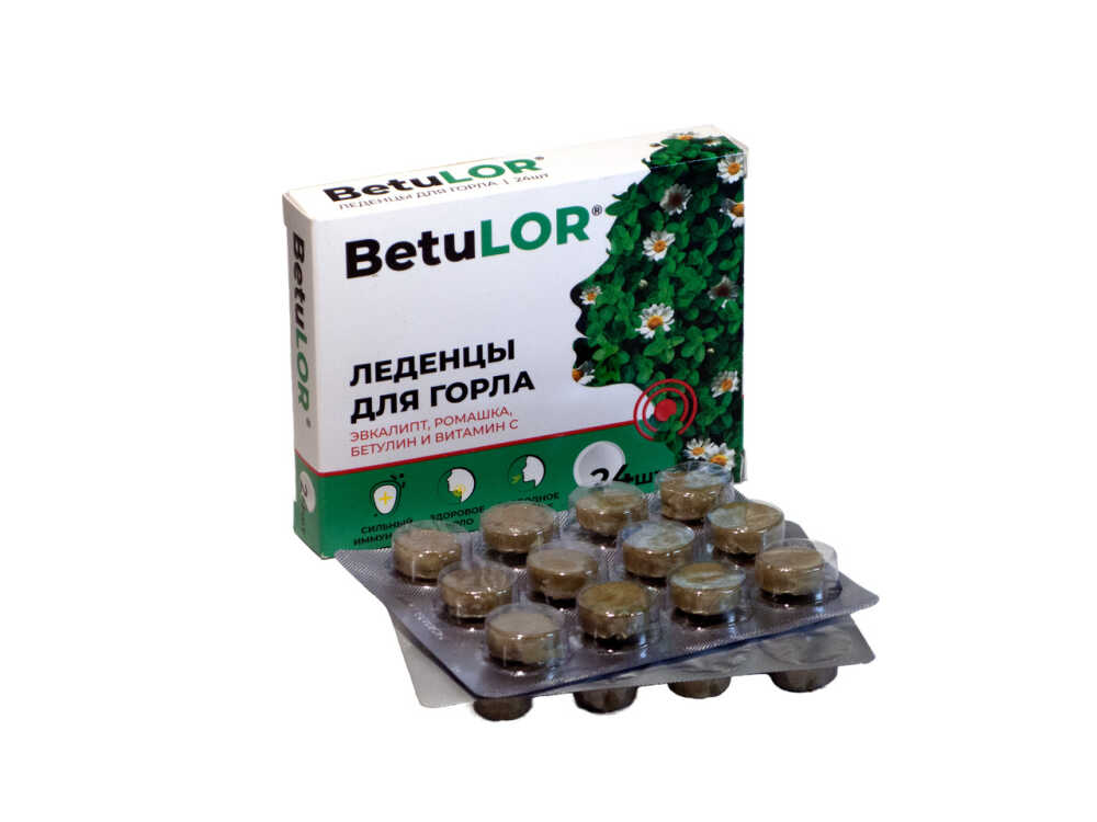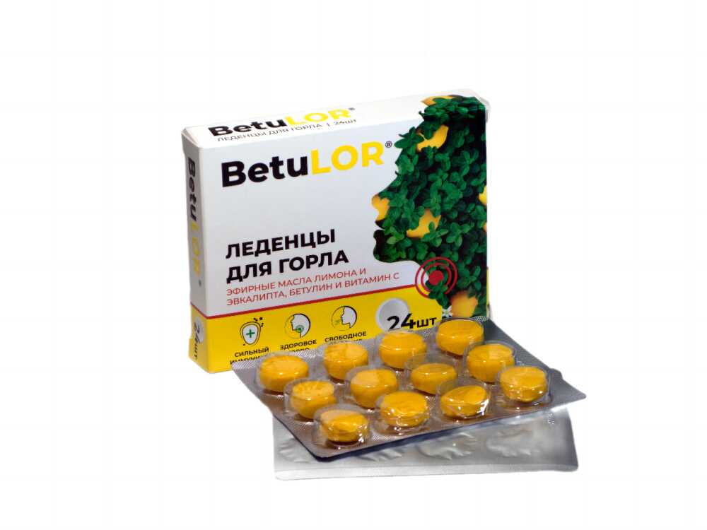 Леденцы для горла Эфирные масла лимона и эвкалипта, бетулин и витамин С 24 шт.