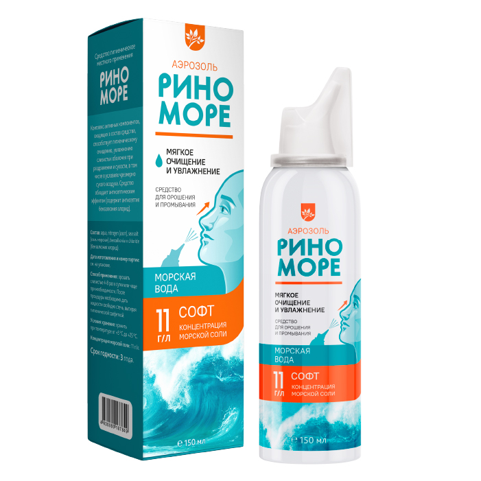 Спрей морская вода Риноморе Софт аэрозоль 150 мл.