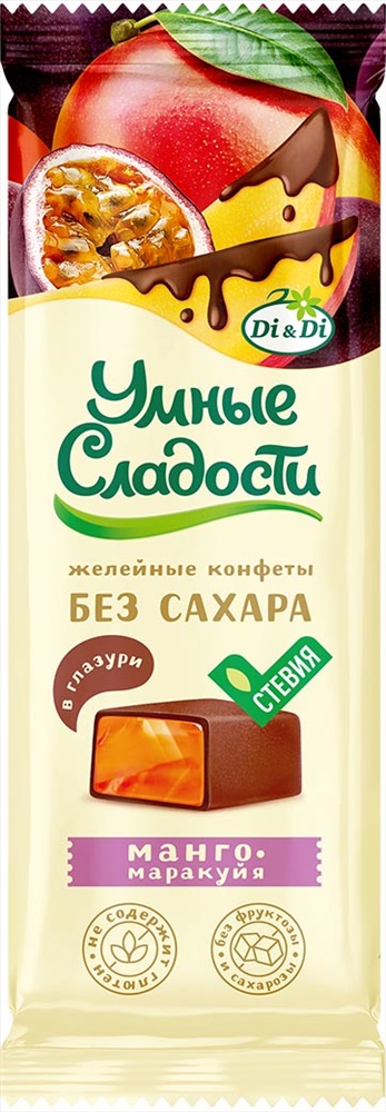 Конфеты желейные со вкусом манго-маракуйя в глазури Умные сладости 105 гр.