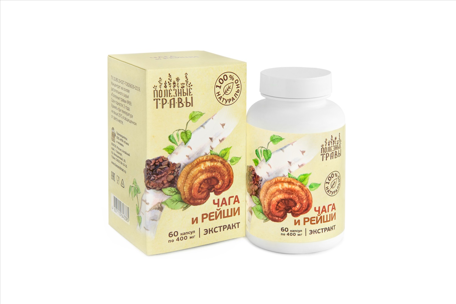 Экстракт Чага и Рейши 60 капс. по 450 мг.