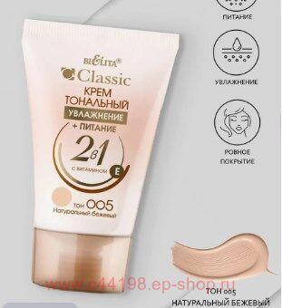 Белита Классик Крем тональный увлажнение+питание 2в1 тон 005 натуральный бежевый 30 гр