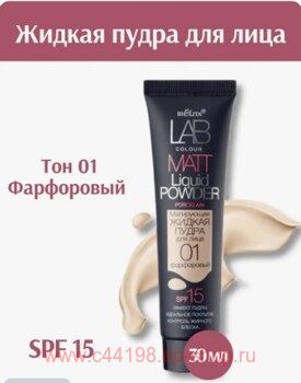 Белита Lab colour Матирующая жидкая пудра для лица тон 01 фарфоровый 30 мл