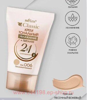 Белита Классик Крем тональный увлажнение+питание 2в1 тон 006 песочный бежевый 30 гр