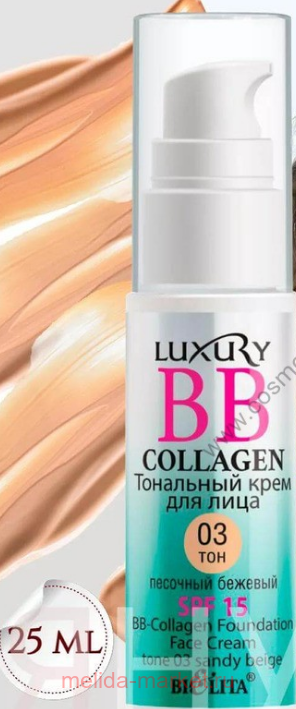 Белита Luxury BB-Collagen Тональный крем для лица тон 03 песочный бежевый 25 мл