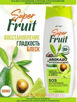 Витэкс SuperFRUIT Шампунь для волос гладкость и блеск SOS-восстановление без силиконов Авокадо+фруктовый микс 500мл