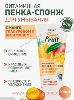 Витэкс SuperFRUIT Пенка-спонж витаминная для умывания с манго гиалуроном и витамином С 200мл