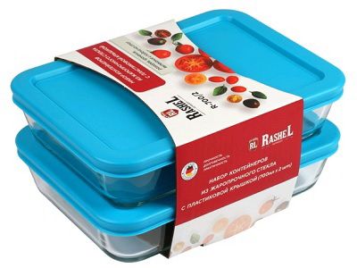 Набор прямоугольных  контейнеров 2 шт, 700мл, из жаропрочного стекла с пластиковой крышкой 3 фото