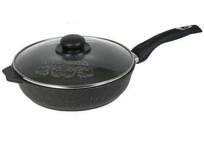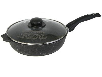 Сковорода 26см, несъём. ручка, стекл крышка Гранит black 3 фото