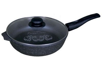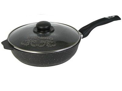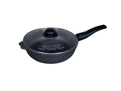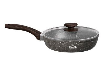 Сковорода 22см а/п с индукционным дном, стекл. крышка, цвет: коричневый гранит R-10622к 3 фото
