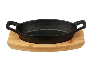 Сковорода мини 15х9.8см чугун на подставке из бамбука овальная, SATOSHI 3 фото