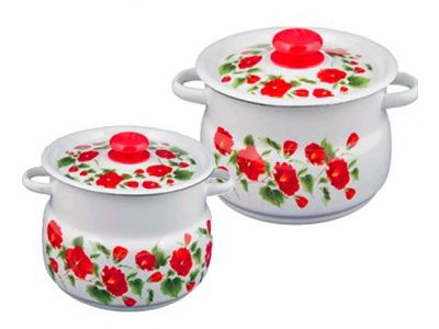 Набор кастрюль (5,5л, 4л) РАМО эмаль белый с деколью на крышке N10B60 3 фото