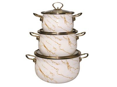 Набор кастрюль 6пр. эмаль (2,2л, 4л, 6,5л), индукция, цвет: кремовый мрамор, R-224650 3 фото