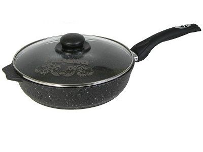 Сковорода 22см, несъём. ручка, стекл крышка, Гранит black 3 фото