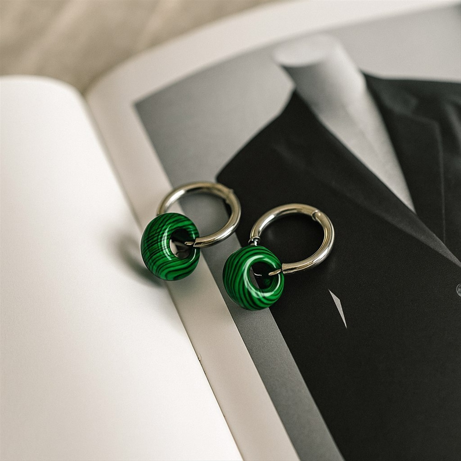 Серьги бублики ювелирная бижутерия коллекция "Дубай" покрытие посеребрение, вставка: пластик, цвет: изумрудный, арт.007.211