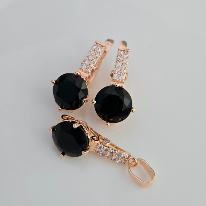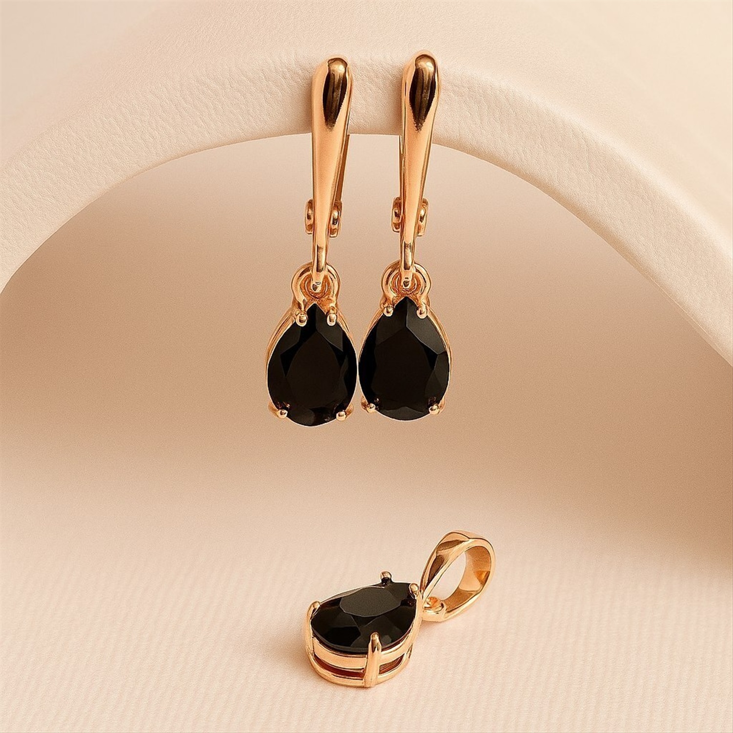 Комплект ювелирной бижутерии коллекция "Дубай" серьги и кулон, покрытие позолота, вставка: фианиты и цирконы, цвет: черный и прозрачный, Уценка, арт.08.4040 (414.006 )