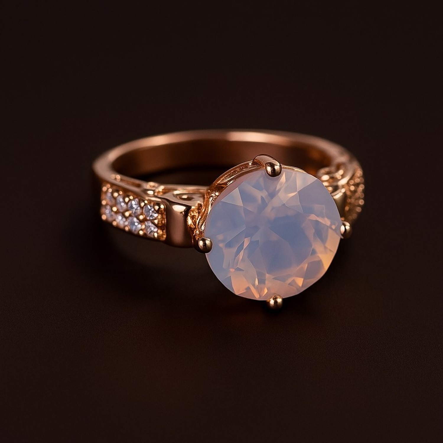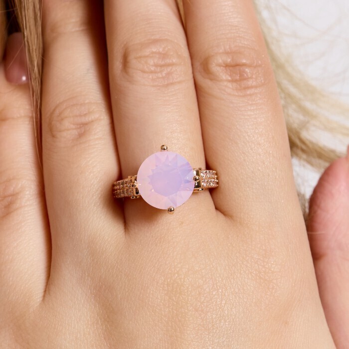 Кольцо 17 р ювелирная бижутерия коллекция "Дубай", покрытие позолота, вставка: фианиты и цирконы, цвет: нежный розовый и прозрачный, Уценка, арт.08.4041-17 (414.124-17) 2 фото