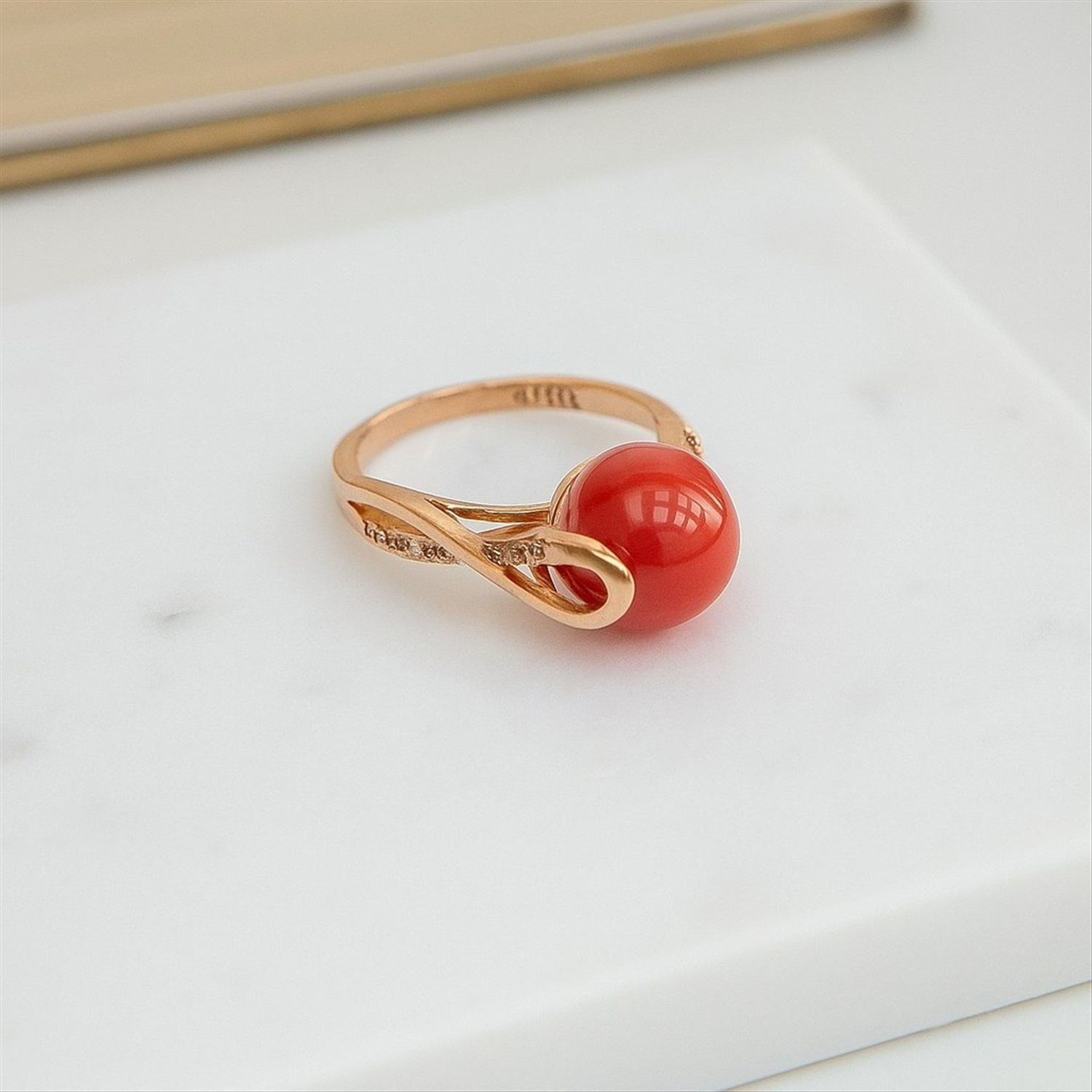 Кольцо 19 р ювелирная бижутерия коллекция "Дубай" покрытие позолота, вставка: искусственный жемчуг и цирконы, цвет: прозрачный и красный с перламутровым отливом, арт.007.202-19