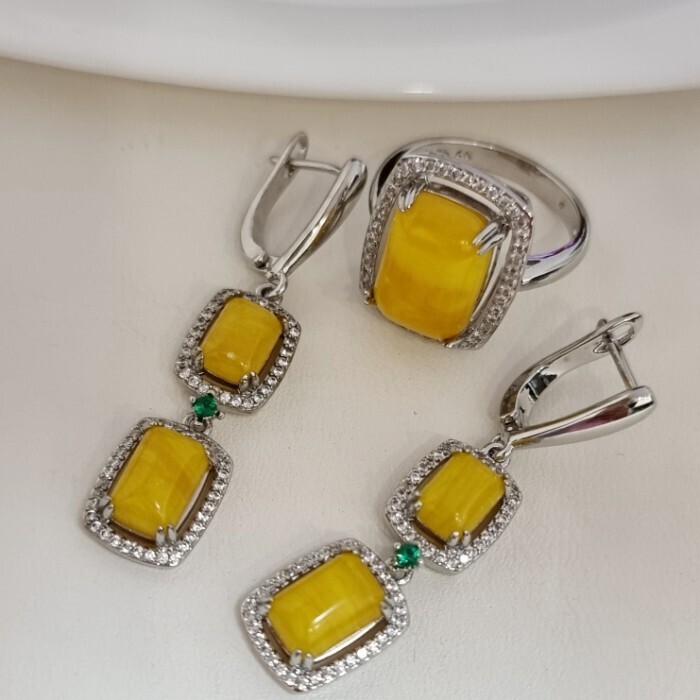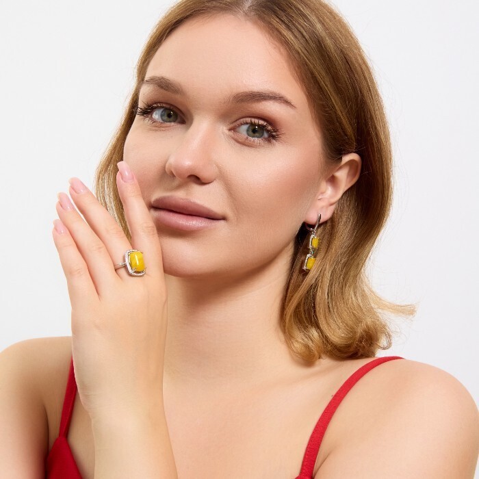 Комплект ювелирной бижутерии серьги и кольцо 17 р, покрытие посеребрение, вставка: фианиты и искусственный камень, цвет: желтый и прозрачный, Уценка, арт.08.4026-17 (313.160-17) 2 фото