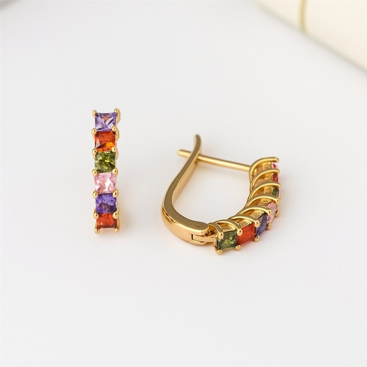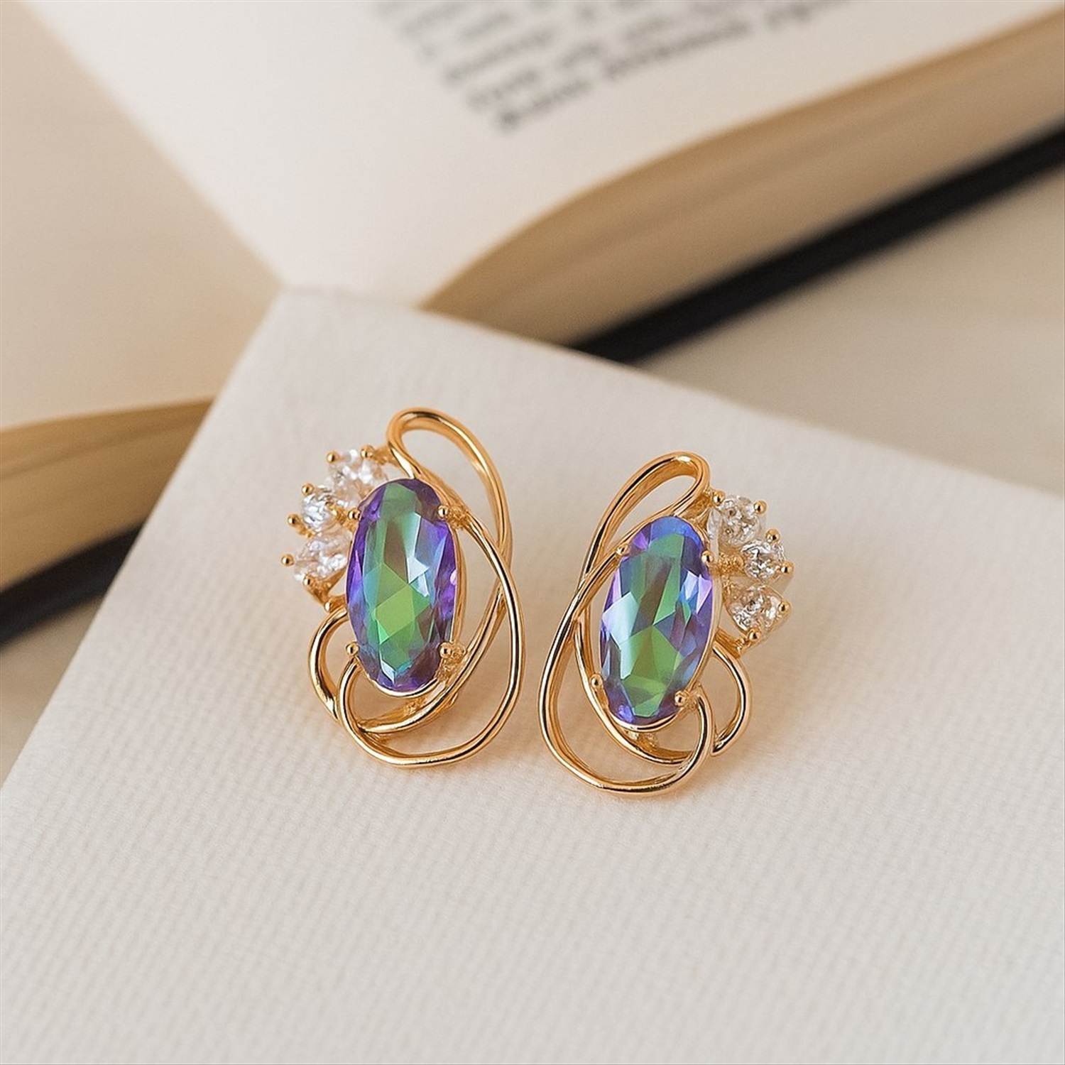 Серьги ювелирная бижутерия коллекция "Дубай" покрытие позолота, вставка: фианиты, цвет: разноцветный, арт.007.197