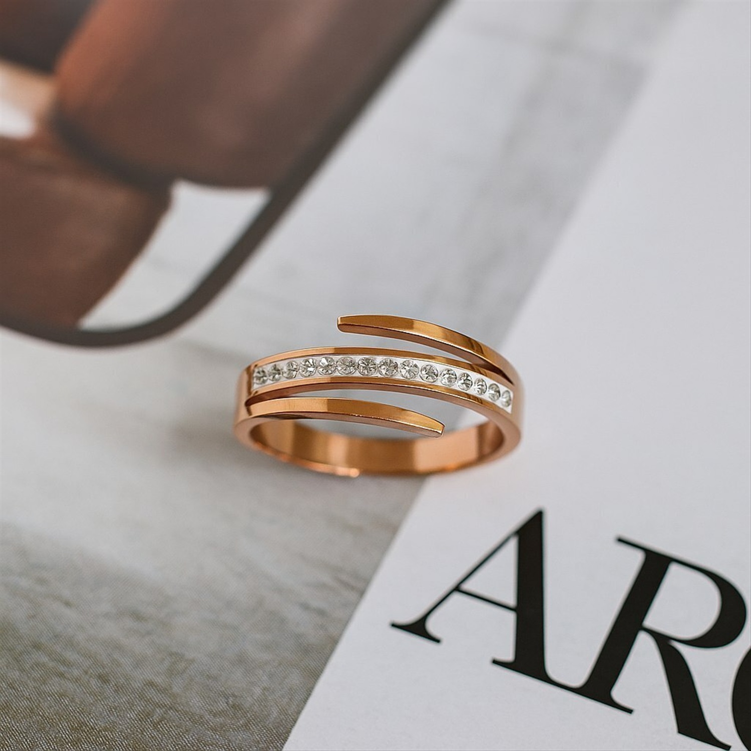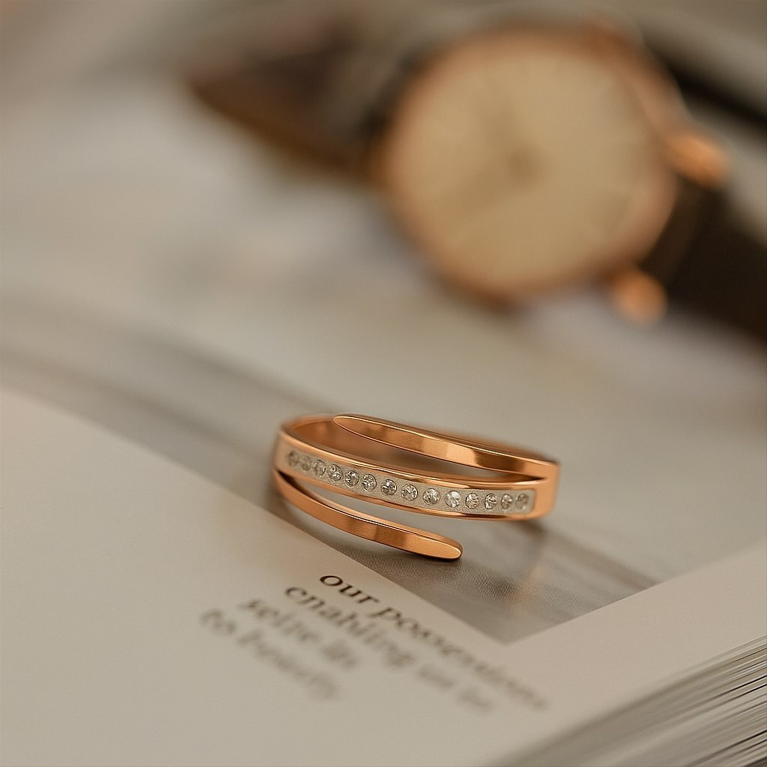Кольцо разъемное 18-19 р ювелирная бижутерия коллекция "Дубай" покрытие позолота, вставка: цирконы, цвет: прозрачный, арт.007.224 3 фото