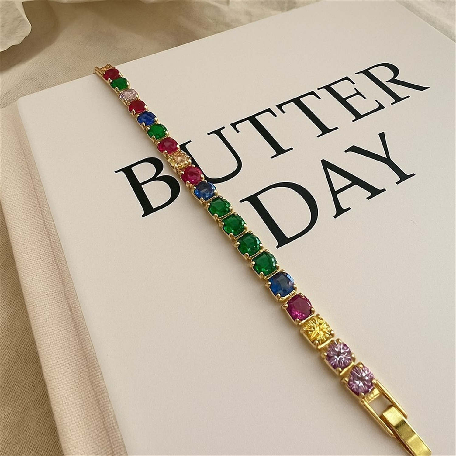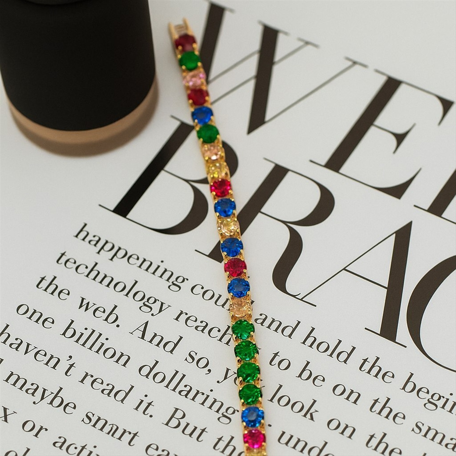 Браслет ювелирная бижутерия коллекция "Дубай" покрытие позолота, вставка: фианиты, цвет: разноцветный, арт.007.221 2 фото
