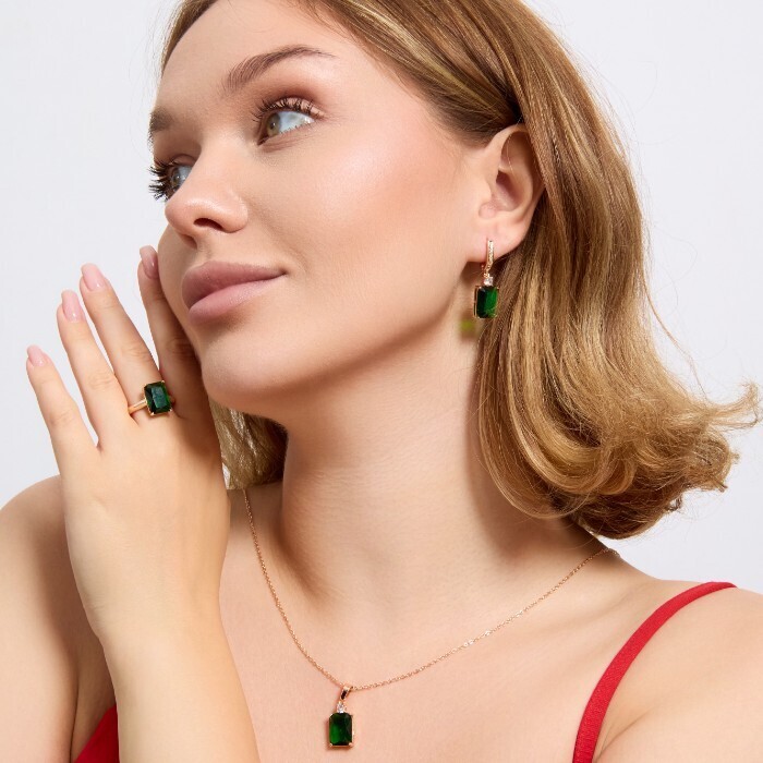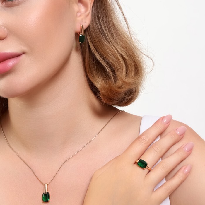 Комплект ювелирной бижутерии коллекция "Дубай" серьги, кулон и кольцо 17 р, покрытие позолота, вставка: фианит, цвет: изумрудный, Уценка, арт.08.4027-17 (313.182-17 ) 2 фото