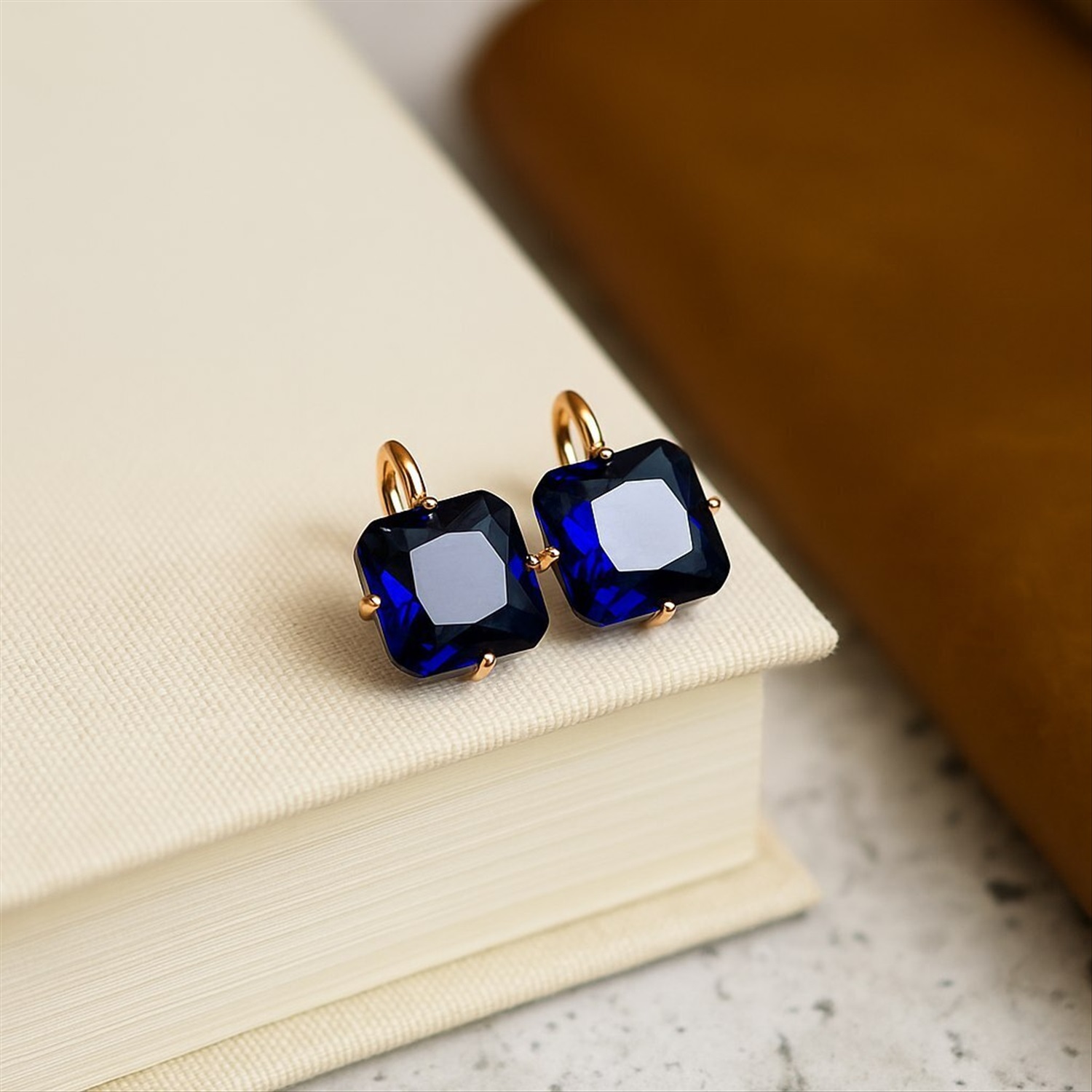 Серьги ювелирная бижутерия коллекция "Дубай" покрытие позолота, вставка: фианит, цвет: синий, арт.007.194