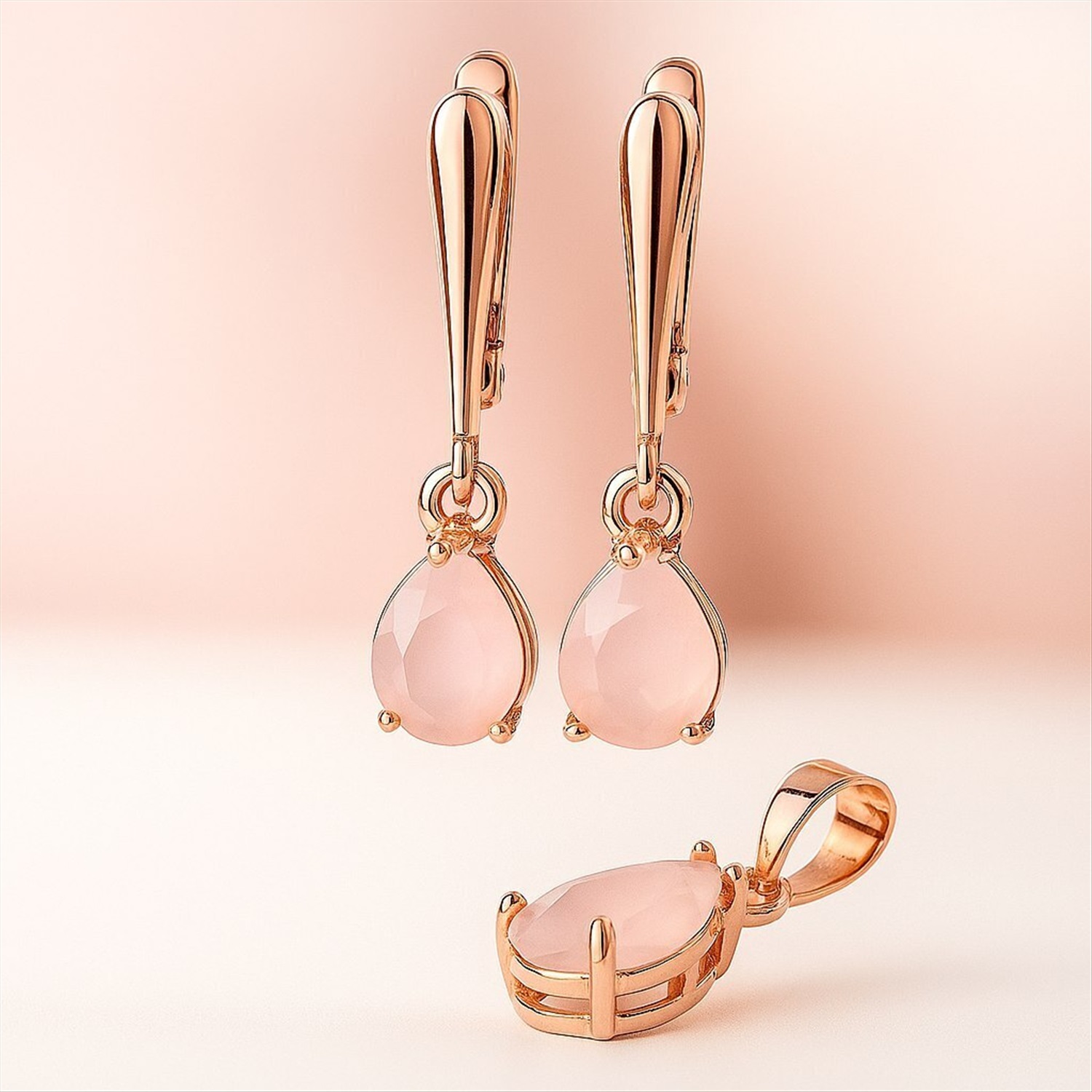 Комплект ювелирной бижутерии коллекция "Дубай" серьги и кулон, покрытие позолота, вставка: фианиты, цвет: розовый матовый, Уценка, арт.08.4047 (314.975)